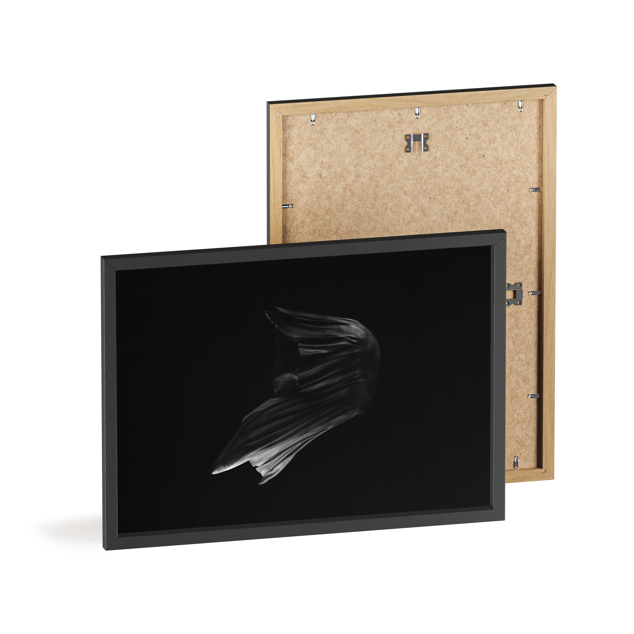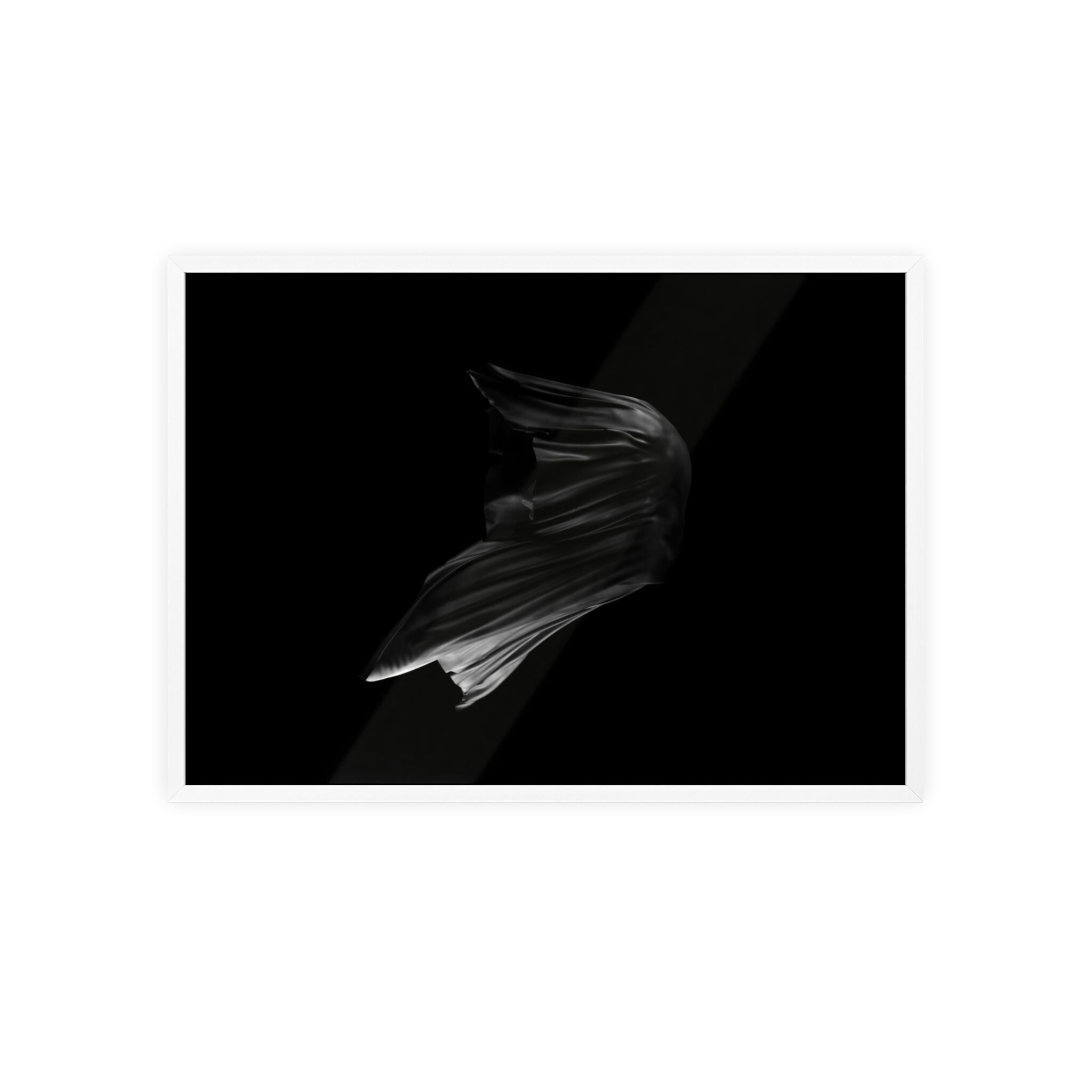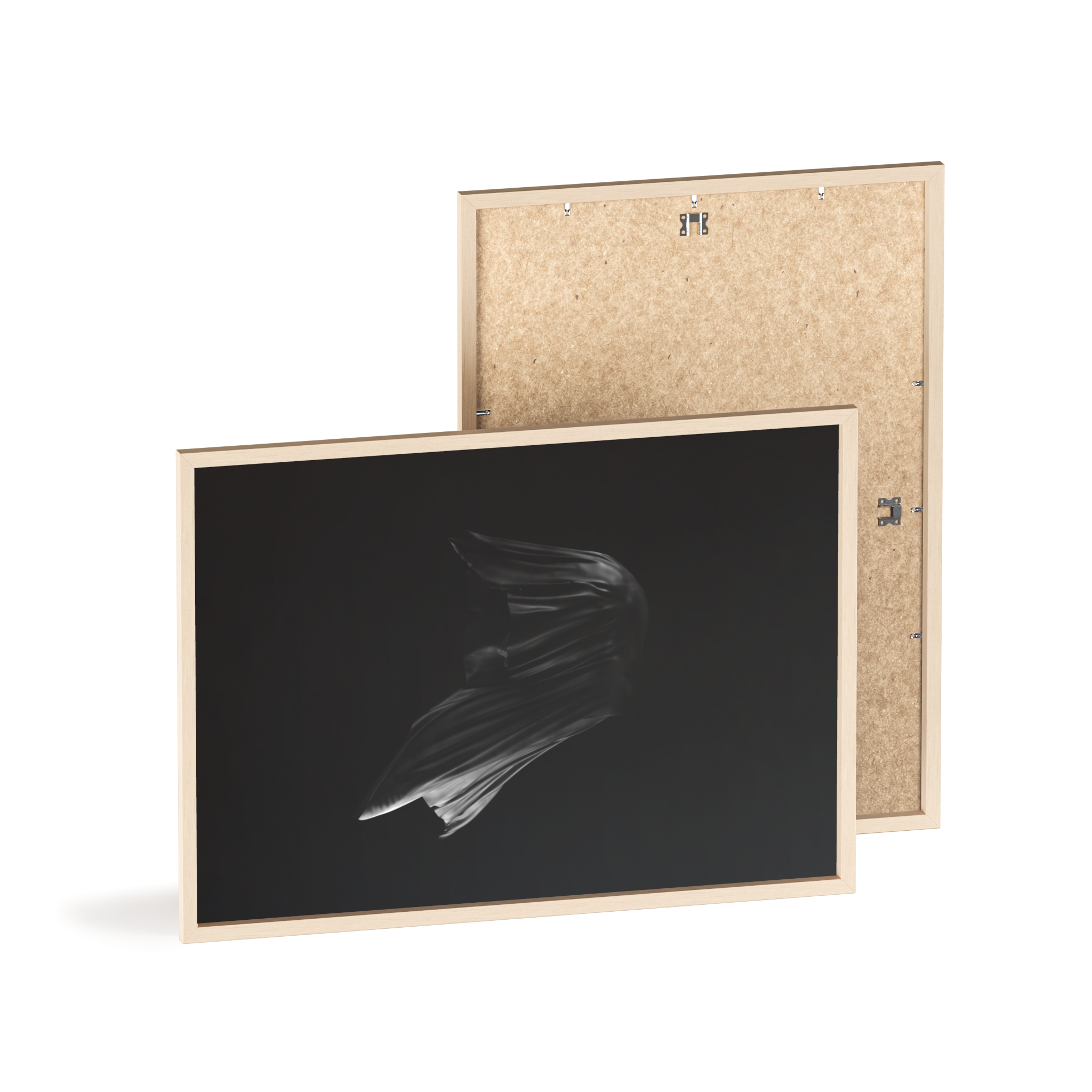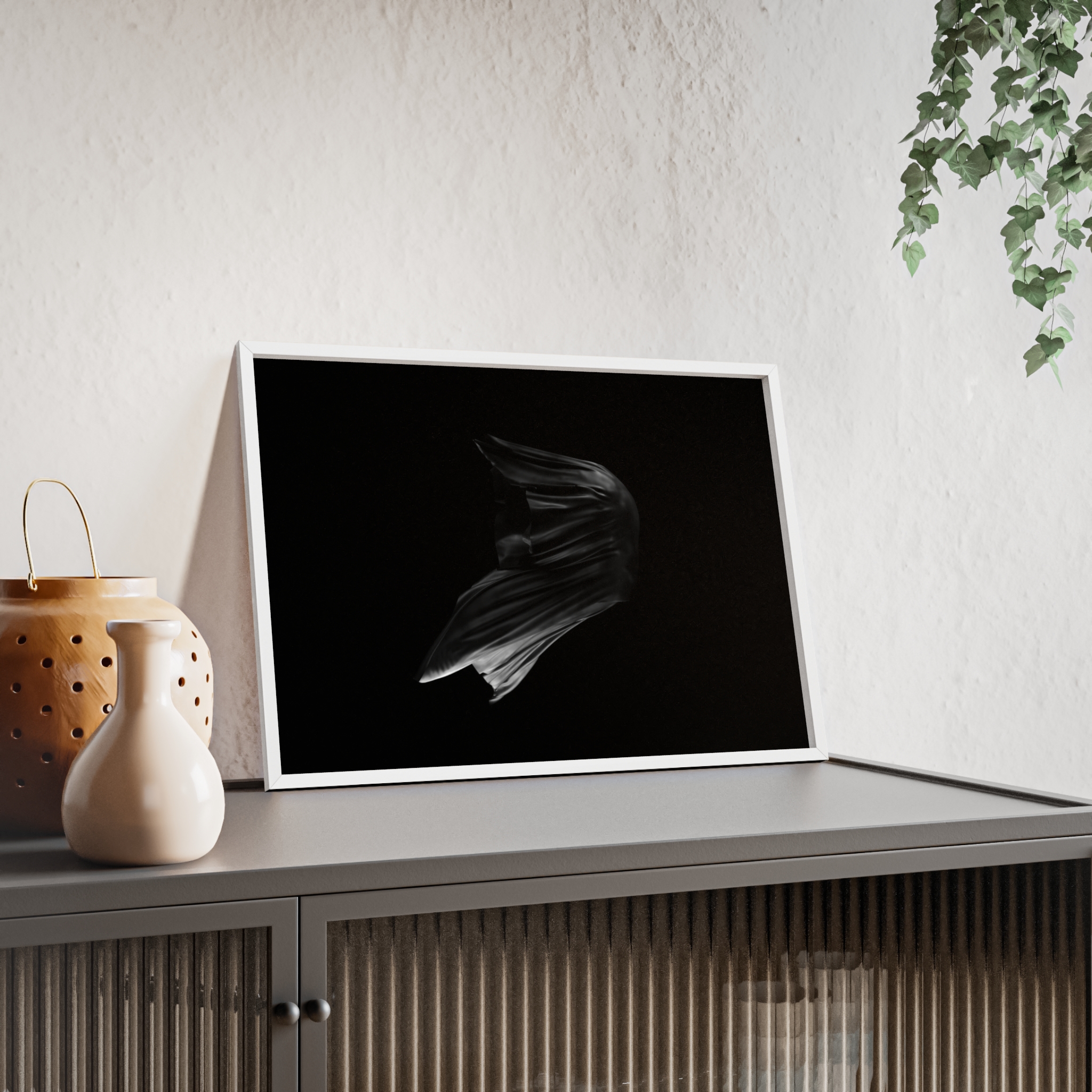 A minimal, framed poster that brings calm and quiet sophistication to any wall. The deep black background makes the soft, flowing brush-stroke the focal point — like a frozen whisper in motion. Choose a Natural Wood, Black, or White pine frame to match your room’s mood, and pick Satin or Matte paper to control the sheen. It arrives ready to hang with protective acrylic glass and hardware, so you can place it in a living room gallery, a serene office corner, or above a bedside table for a subtle statement of taste and restraint.