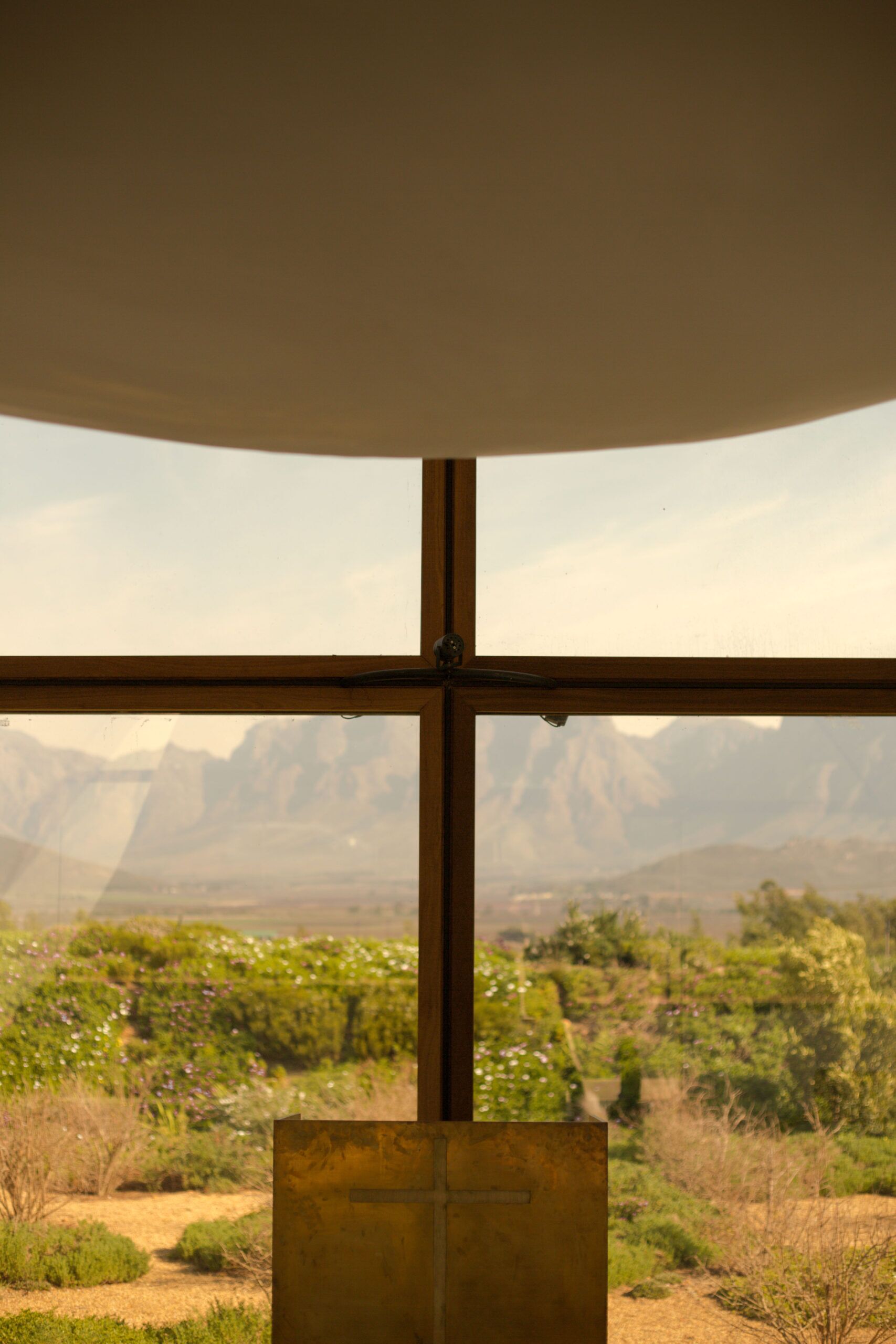 Photograph of the interior window cross of Bosjes Chapel.