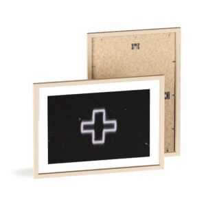– Three frame colors available: Natural Wood, Black, and White finishes.
