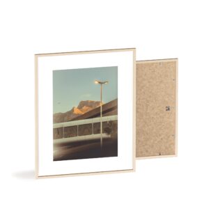 Bring your artwork to life on these high-quality photopaper (250gsm) posters. Complete with a pinewood frame for a natural look, these posters come with a protective acrylic glass cover for long-lasting home decor. Its natural wood frame is available in black and white options and you can choose between a satin or a matte finish for your paper. Available in five sizes, horizontal and vertical orientations to best fit your art. Sawtooth hanging hardware included (except for the 11.7″ x 8.3″ size which has a small metallic opening on its backside instead).